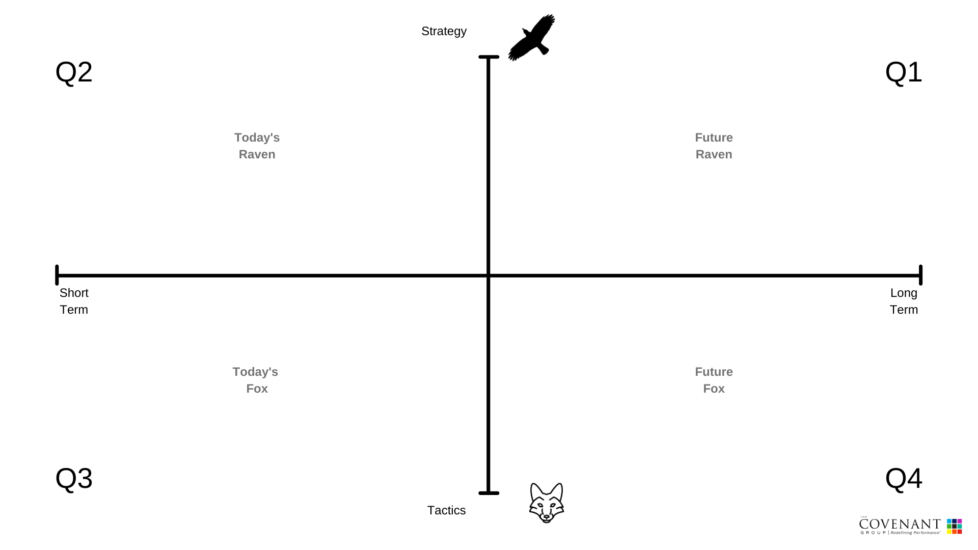 What we need to do, both in life and in business, is learn how to shapeshift between strategy and tactics. Here you are making a distinction between strategy and execution. We have found the Raven and Fox analogy to be very helpful in thinking about how you move between strategy and tactics.