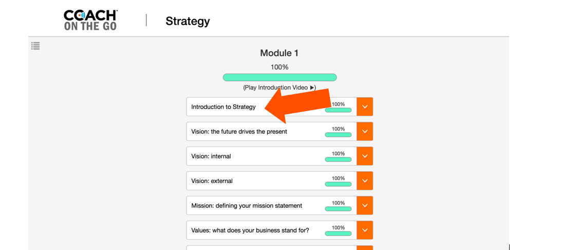 If you have watched the videos and still want to do more within Coach on The Go™. Start with Strategy and work your way through each of the exercises inside strategy. From the dashboard click the menu icon.